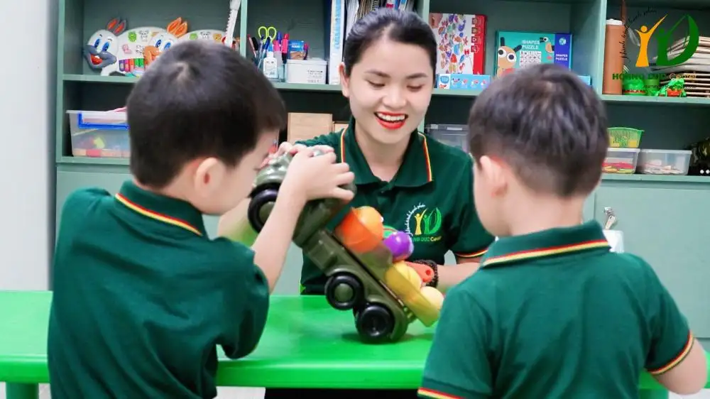 Tại Hoàng Đức, trị liệu nhóm được xây dựng dựa trên sự kết hợp giữa trị liệu hành vi, giáo dục đặc biệt và tâm lý học phát triển. Mỗi hoạt động đều được thiết kế để trẻ trải nghiệm thực tế — từ trò chơi vận động, trò chơi giao tiếp, đến hoạt động nhóm nhỏ có sự hỗ trợ của chuyên viên. Mục tiêu là giúp trẻ hiểu được quy tắc xã hội, biết chờ đợi, biết chia sẻ và biết cách thể hiện cảm xúc một cách phù hợp. Chính trong không gian nhóm ấy, trẻ được học cách “thuộc về” – được bạn đón nhận, được thầy cô hướng dẫn và được cha mẹ nhìn thấy sự thay đổi từng ngày. Mỗi nụ cười, mỗi lần trẻ chủ động tham gia đều là một dấu mốc trong hành trình phát triển xã hội của con.