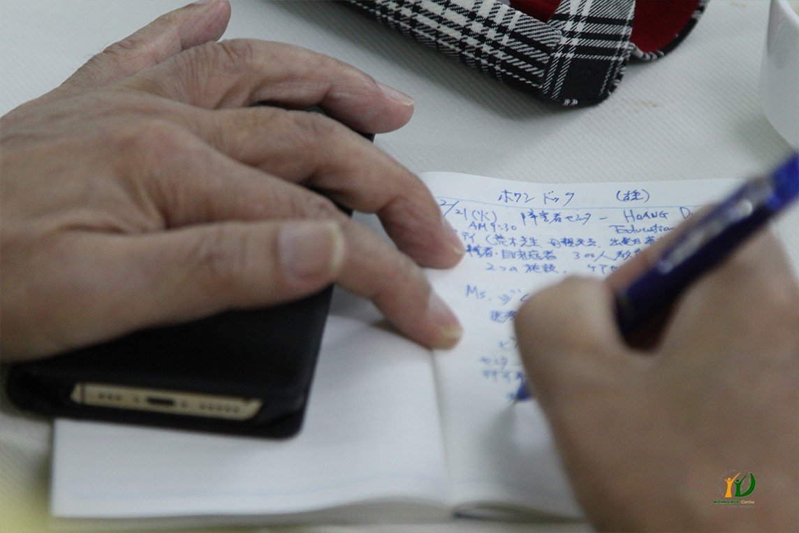 Đoàn chuyên gia bao gồm: Ông Hajime Suzuki – Chủ tịch Cơ quan xây dựng môi trường quốc tế thuộc JICA VIETNAM; Ông Kazuhiro Aoki – Chủ tịch Tổng công ty phúc lợi xã hội Hiệp hội phúc lợi Yosanoumi; Ông Kitagawa Juichi – Giáo sư Trường đại học Ritsumeikan – Kyoto Nhật, thành viên JICA. Làm việc cùng HDEC, đoàn chuyên gia đã tham quan các lớp can thiệp và mô hình can thiệp đa ngành tại Trung tâm Trẻ tự kỷ Hoàng Đức.