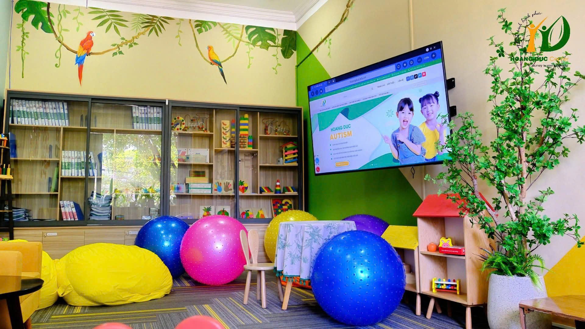 Không gian trị liệu tại Hoàng Đức được thiết kế tối ưu cho trẻ có rối loạn phát triển: từ hệ thống phòng chức năng âm thanh cách biệt, phòng vận động trị liệu cảm giác, đến các khu vui chơi, lớp học kỹ năng nhóm… Từng chi tiết đều được tính toán kỹ lưỡng để tạo sự an toàn, giảm kích thích tiêu cực, hỗ trợ điều hòa cảm xúc cho trẻ.